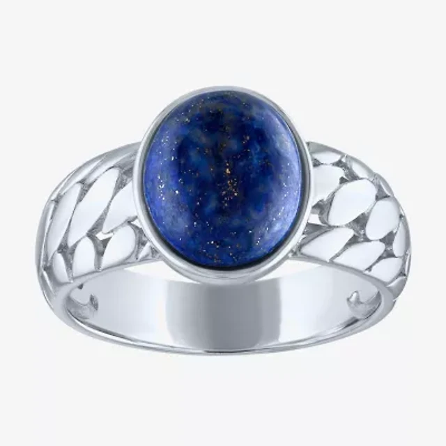 Mens Genuine Lapis Sterling Silver Oval Fashion Ring