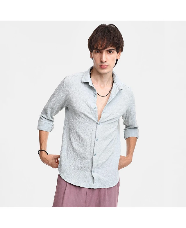 Men's Icy Blue Cubic-Seersucker Shirt