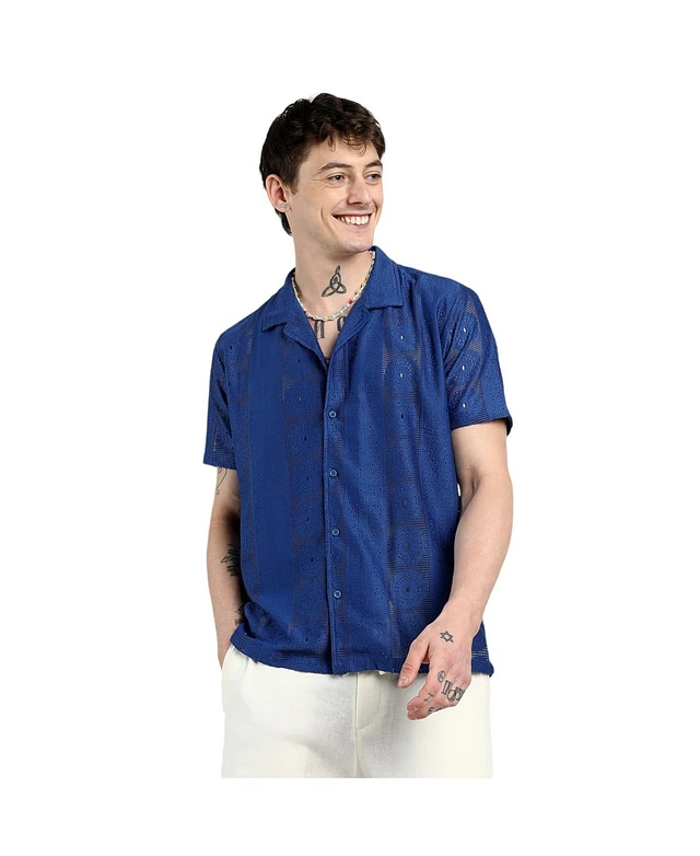 Campus Sutra Men's Indigo Blue Contrast Aztec Shirt