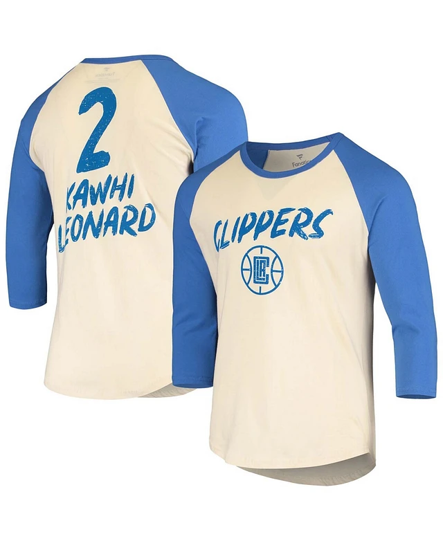 Men's Kawhi Leonard Cream and Royal La Clippers Raglan 3/4 Sleeve T-shirt