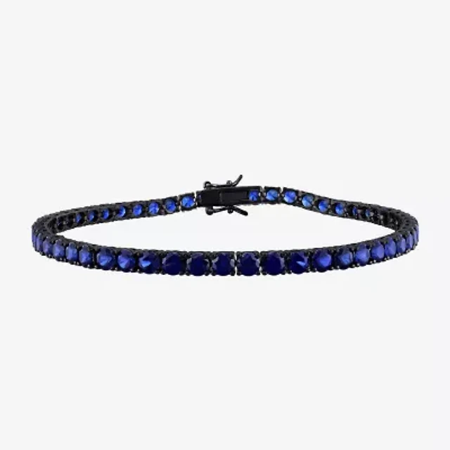 Mens Lab Created Sapphire Sterling Silver 9 Inch Tennis Bracelet