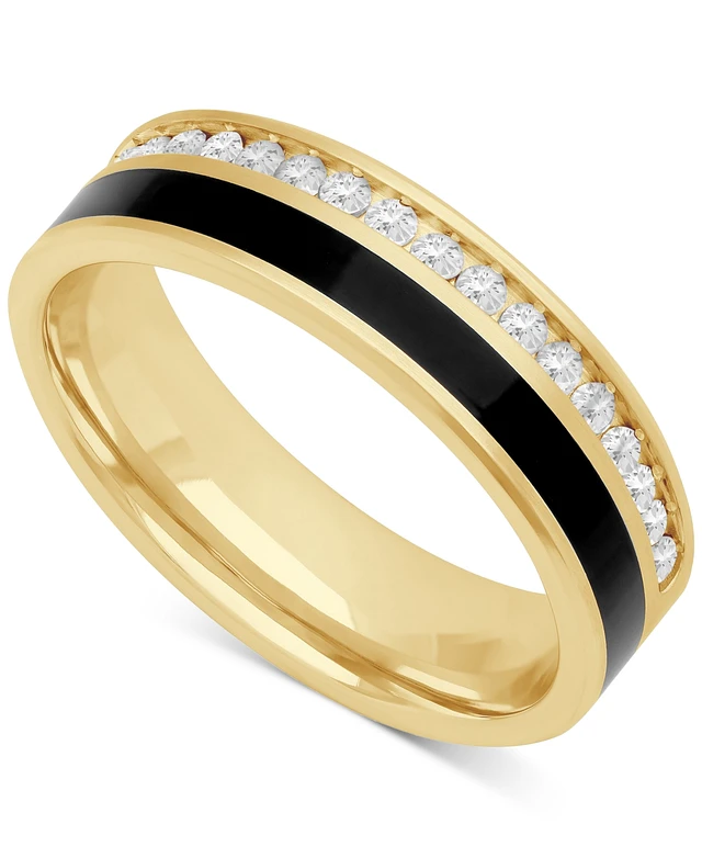 Men's Lab-Created White Sapphire (3/4 ct. t.w.) & Ceramic Stripe Band in 18k Gold-Plated Sterling Silver (Also in Black Sapphire)