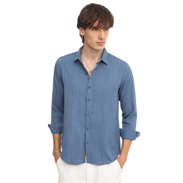 Campus Sutra Men's Prussian Blue Contrast Halo Striped Shirt