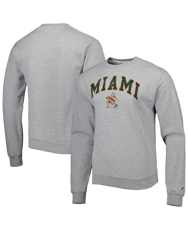 Men's League Collegiate Wear Gray Miami Hurricanes 1965 Arch Essential Fleece Pullover Sweatshirt