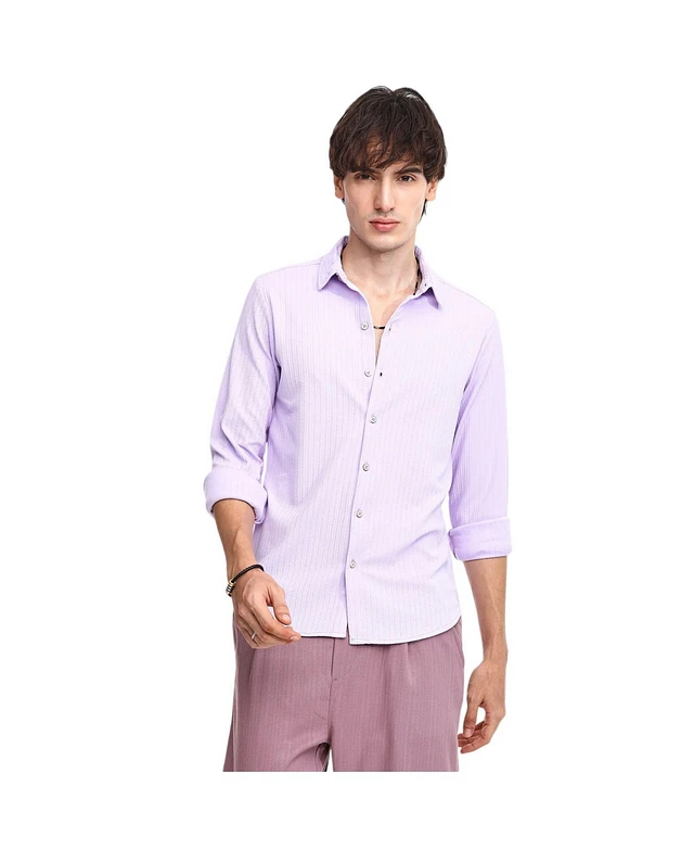 Men's Lilac Stripe-Creased Shirt