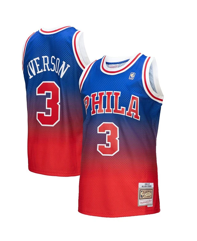 Men's Mitchell & Ness Allen Iverson Red, Royal Philadelphia 76ers 1996/97 Hardwood Classics Fadeaway Swingman Player Jersey
