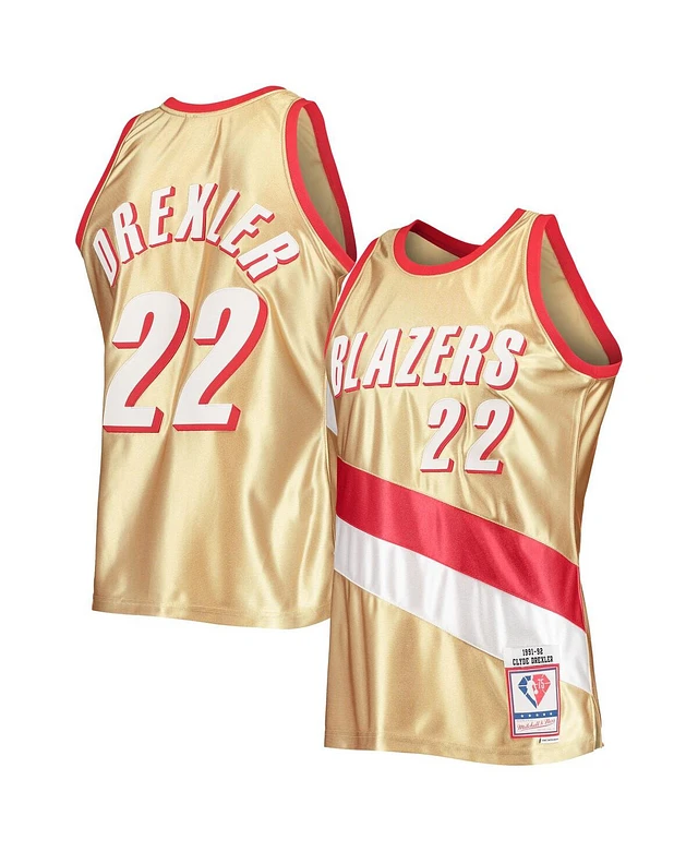 Men's Mitchell & Ness Clyde Drexler Gold Portland Trail Blazers 75th Anniversary 1991-92 Hardwood Classics Swingman Jersey