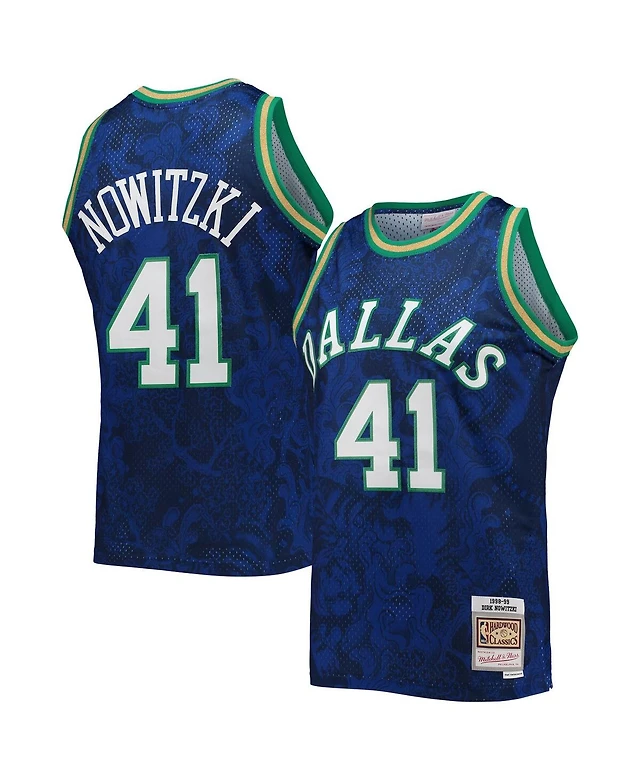 Men's Mitchell & Ness Dirk Nowitzki Blue Dallas Mavericks Hardwood Classics 1998-99 Lunar New Year Swingman Jersey