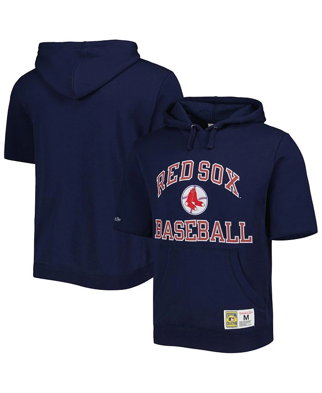 Men's Mitchell & Ness Navy Boston Red Sox Cooperstown Collection Washed Fleece Pullover Short Sleeve Hoodie