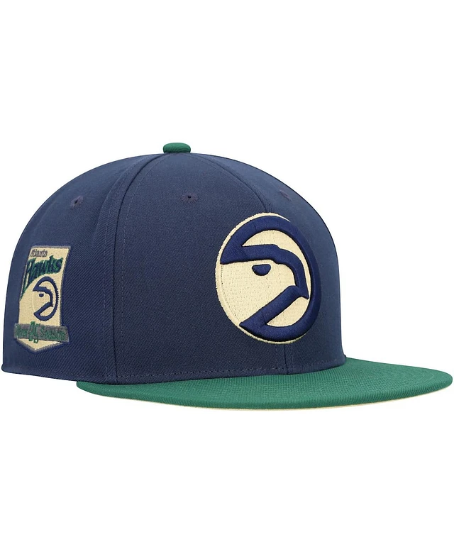 Men's Mitchell & Ness Navy, Green Atlanta Hawks 25 Seasons Hardwood Classics Grassland Fitted Hat