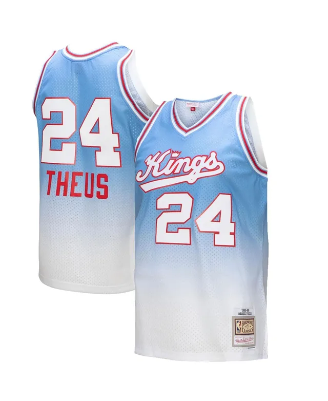 Men's Mitchell & Ness Reggie Theus White, Light Blue Sacramento Kings 1985/86 Hardwood Classics Fadeaway Swingman Player Jersey