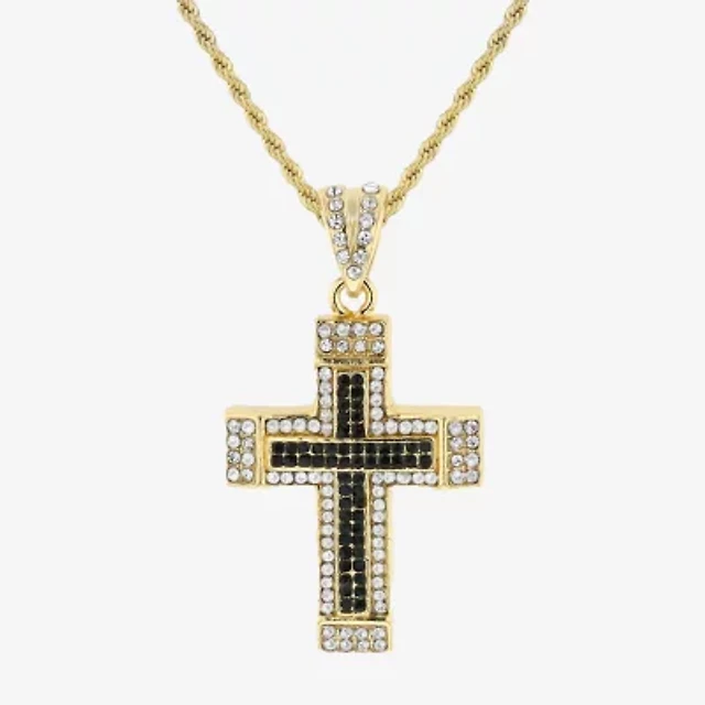 Mens Multi Color Cubic Zirconia Stainless Steel Cross 26 Inch Pendant Necklace