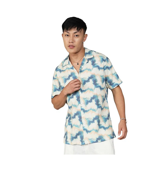 Campus Sutra Men's Navy Blue Abstract-Woven Shirt