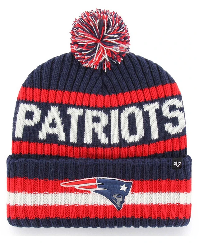 Men's Navy New England Patriots Bering Cuffed Knit Hat with Pom