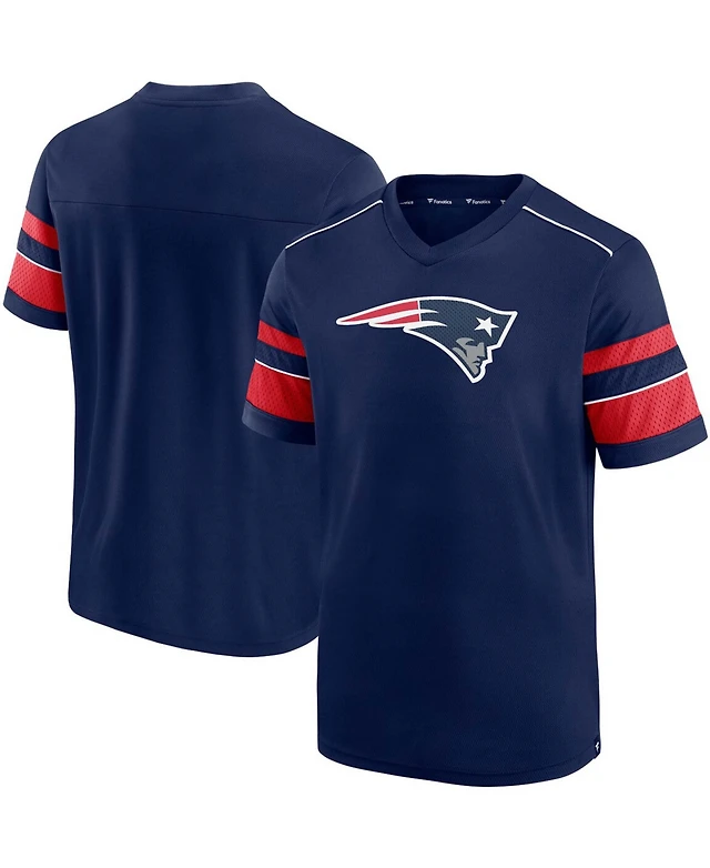 Men's Navy New England Patriots Textured Hashmark V-Neck T-shirt