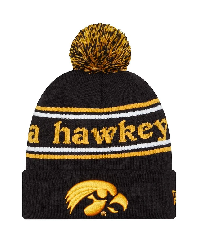 Men's New Era Black Iowa Hawkeyes Marquee Cuffed Knit Hat with Pom