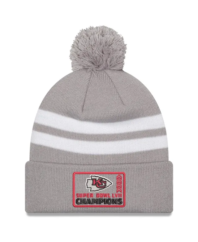 Men's New Era Gray Kansas City Chiefs Super Bowl Lvii Champions Top Stripe Cuffed Pom Knit Hat
