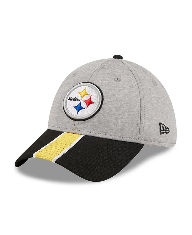 Men's New Era Heather Gray, Black Pittsburgh Steelers Striped 39THIRTY Flex Hat