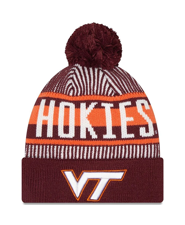 Men's New Era Maroon Virginia Tech Hokies Logo Striped Cuff Knit Hat with Pom