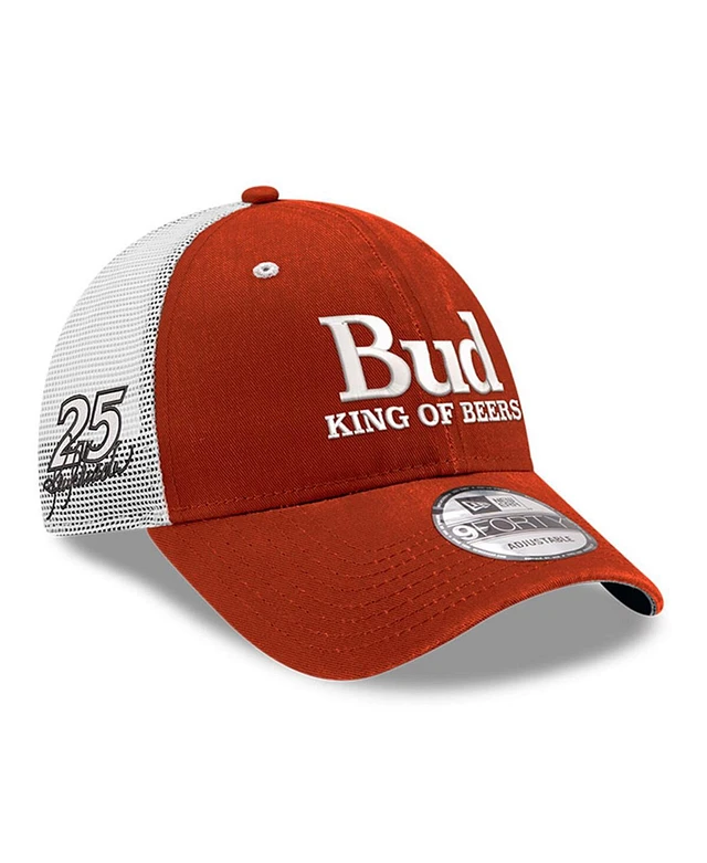 Men's New Era White, Scarlet Hendrick Motorsports Budweiser 9FORTY Adjustable Trucker Hat
