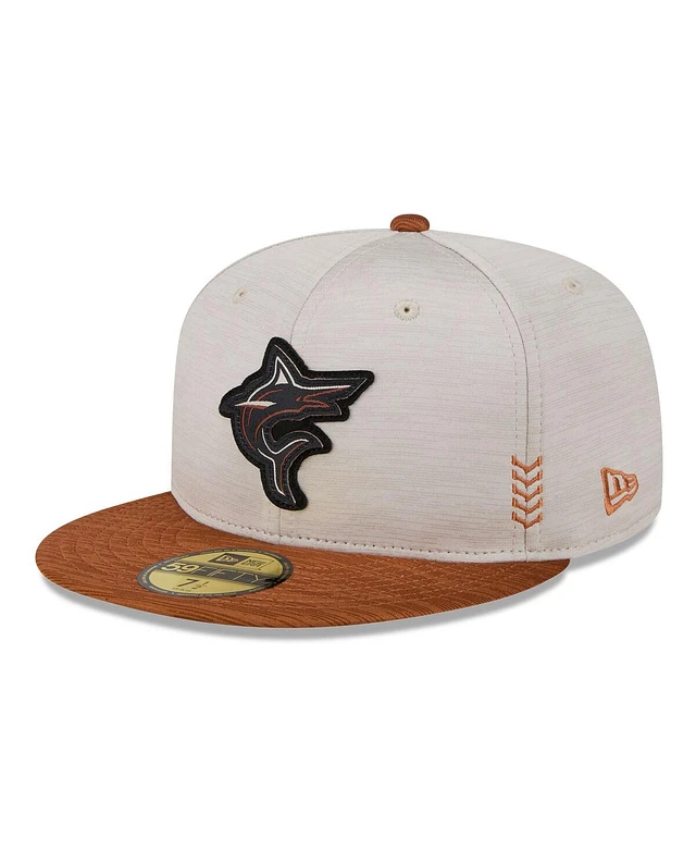 Men's New Era Stone, Brown Miami Marlins 2024 Clubhouse 59FIFTY Fitted Hat
