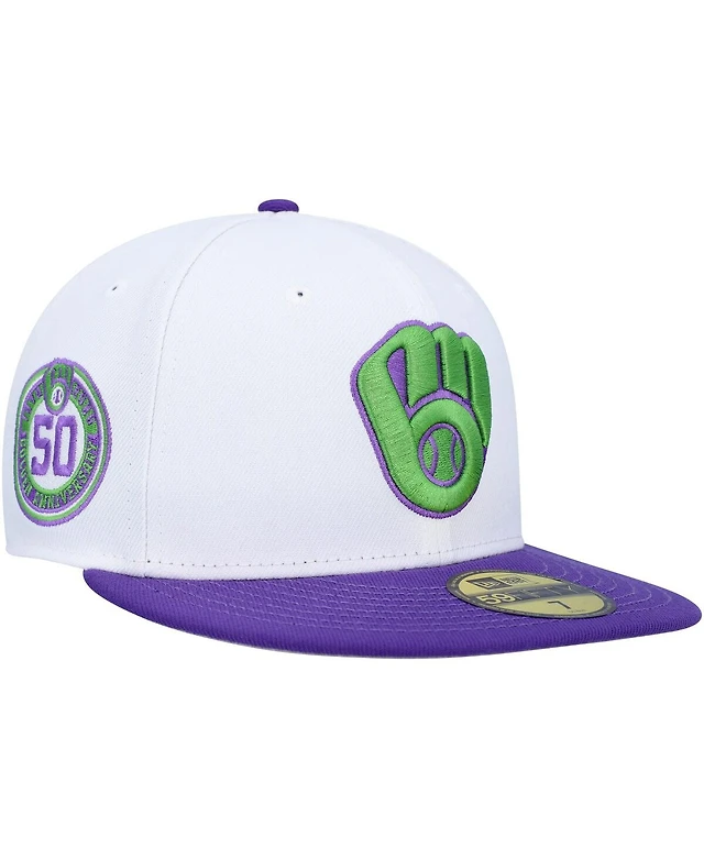 Men's New Era White Milwaukee Brewers 50th Anniversary Side Patch 59FIFTY Fitted Hat