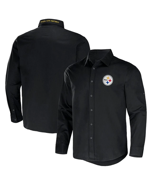Men's Nfl x Darius Rucker Collection by Fanatics Black Pittsburgh Steelers Convertible Twill Long Sleeve Button-Up Shirt