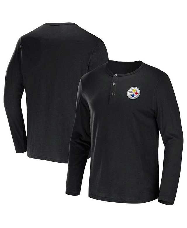 Men's Nfl x Darius Rucker Collection by Fanatics Black Pittsburgh Steelers Slub Jersey Henley Long Sleeve T-shirt