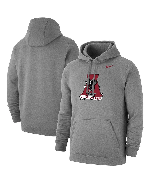 Men's Nike Heathered Gray Alabama Crimson Tide Big and Tall Primary Throwback Logo Club Pullover Hoodie