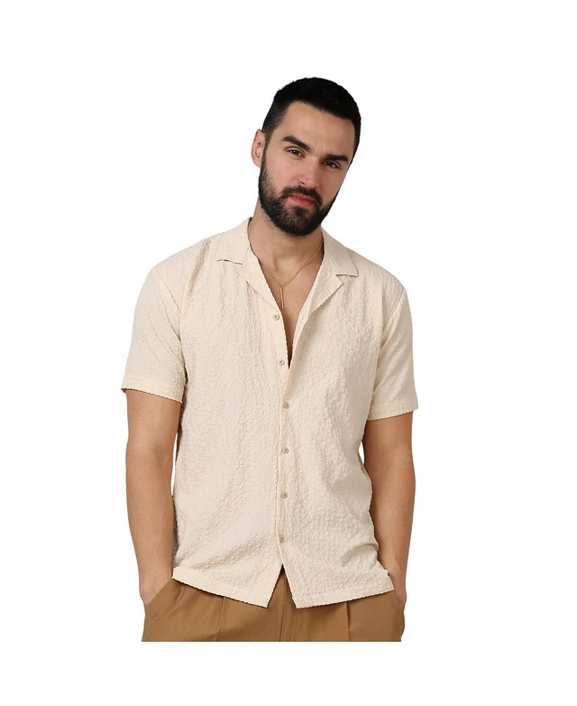 Campus Sutra Men's Pale Yellow Hive-Textured Shirt