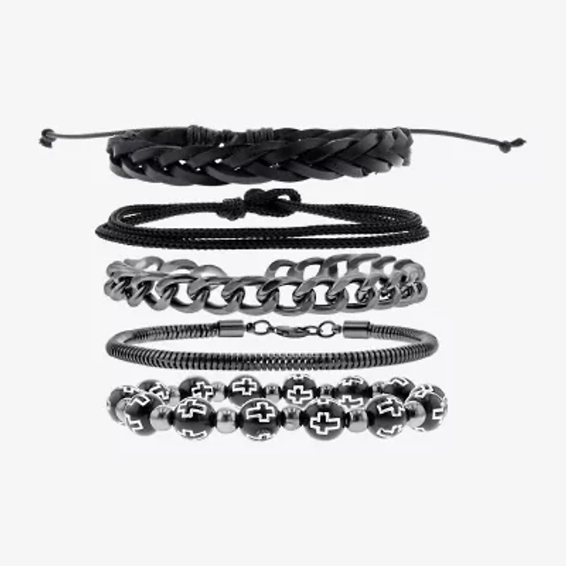 Men's Black Stainless Steel Bracelet Watch Gift Set 46mm