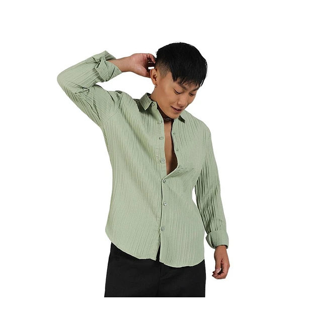 Men's Sky Blue & Ivory White Strokes-Textured Shirt
