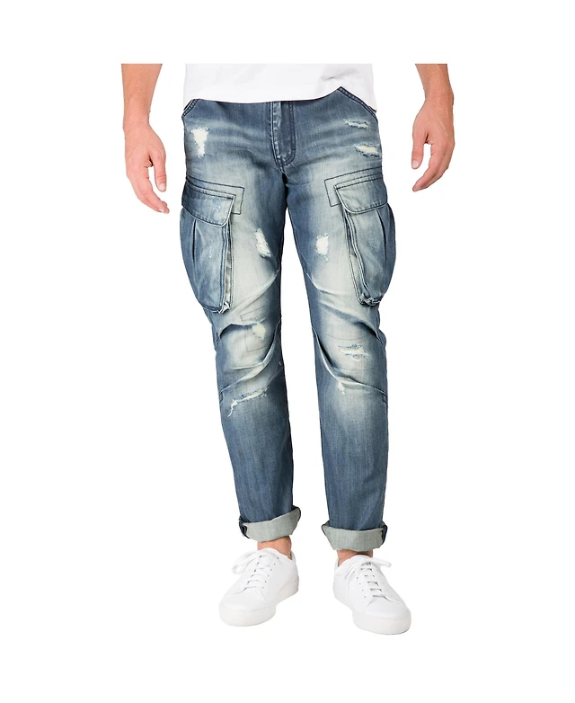 Raw X Men's Slim Fit Moto Rip Repair Cargo Jeans