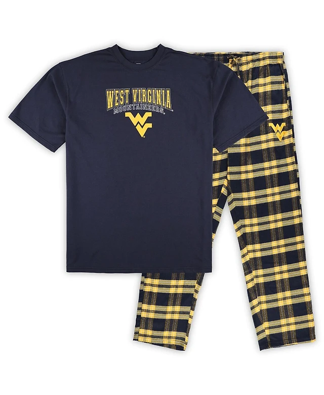 Men's Profile Navy Distressed West Virginia Mountaineers Big and Tall 2-Pack T-shirt and Flannel Pants Set