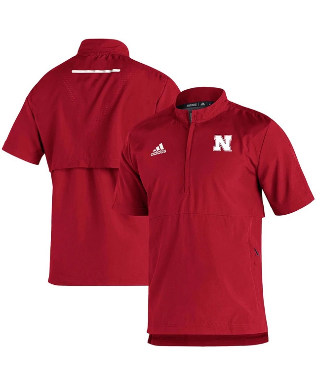 Adidas Men's Scarlet Nebraska Huskers Coaches Sideline Half-Zip Short Sleeve Jacket