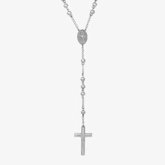Mens Stainless Steel 36” Cross Rosary Necklace