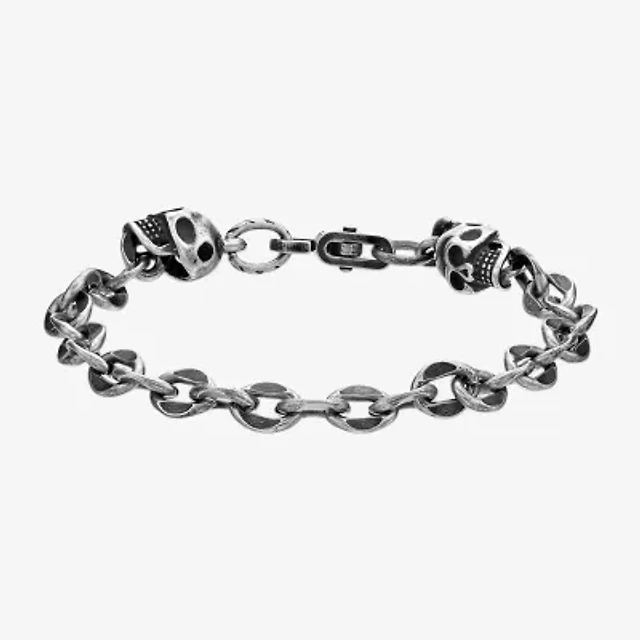 Mens Stainless Steel 9 Inch Solid Cable Skull Chain Bracelet