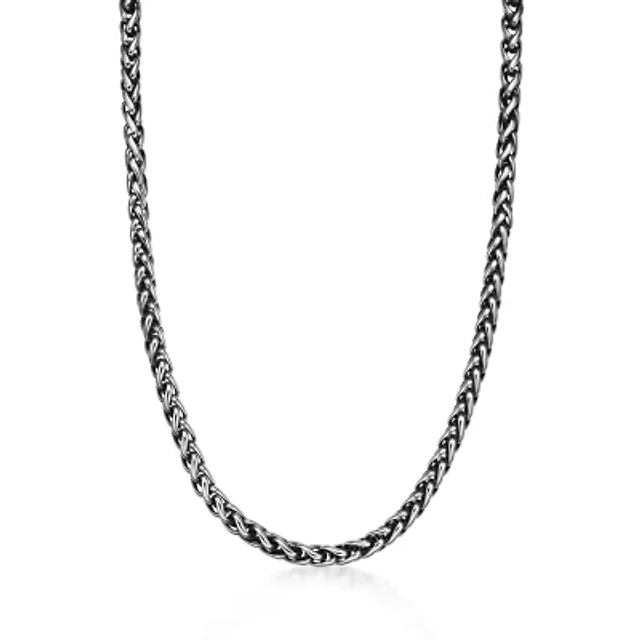 Mens Stainless Steel & Black IP 24" 8mm Wheat Chain