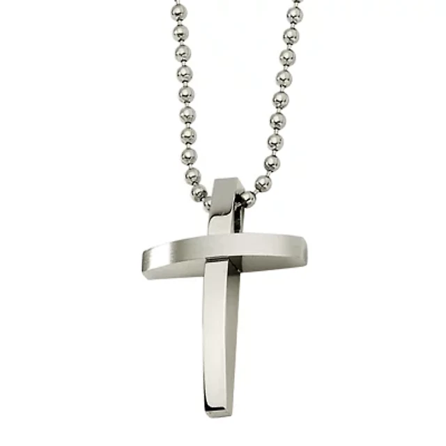 Mens Stainless Steel Curved Cross Pendant Necklace