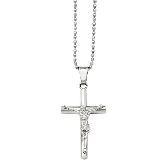 Crucifix Mens Stainless Steel Cross 24 Inch Pendant Necklace