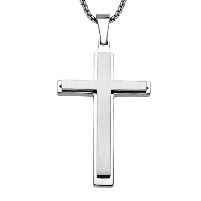 Mens Stainless Steel Cross Inch Pendant Necklace