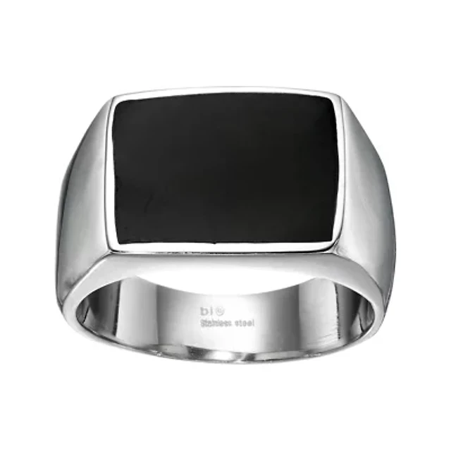 Mens Black Agate Stainless Steel Band Ring