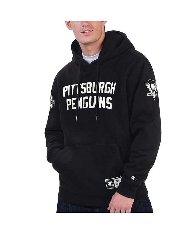Men's Starter Black Pittsburgh Penguins Hat Trick Pullover Hoodie