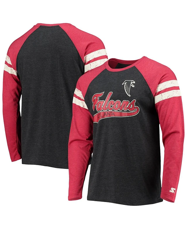 Men's Starter Black, Red Atlanta Falcons Throwback League Raglan Long Sleeve Tri-Blend T-shirt
