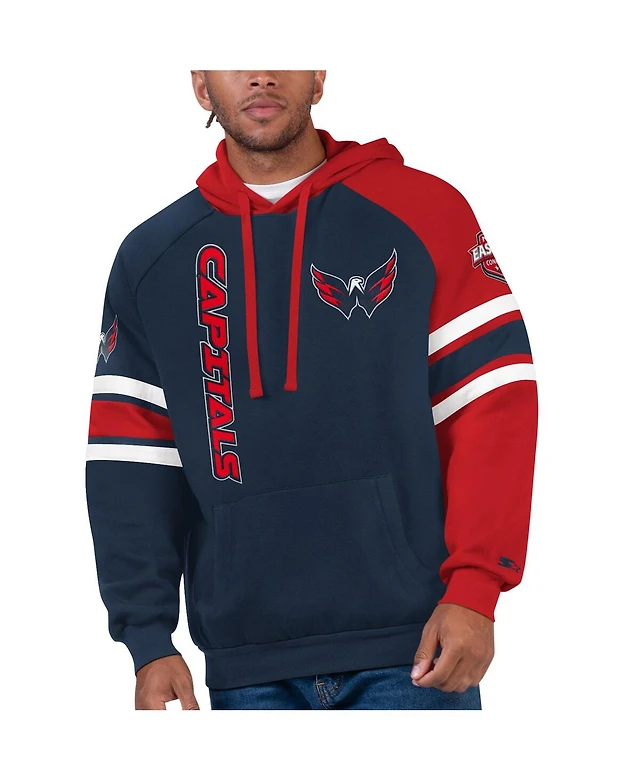 Men's Starter Red, Navy Washington Capitals Gauntlet Raglan Pullover Hoodie