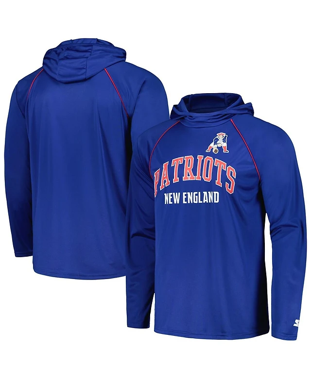 Men's Starter Royal Distressed New England Patriots Gridiron Classics Throwback Raglan Long Sleeve Hooded T-shirt