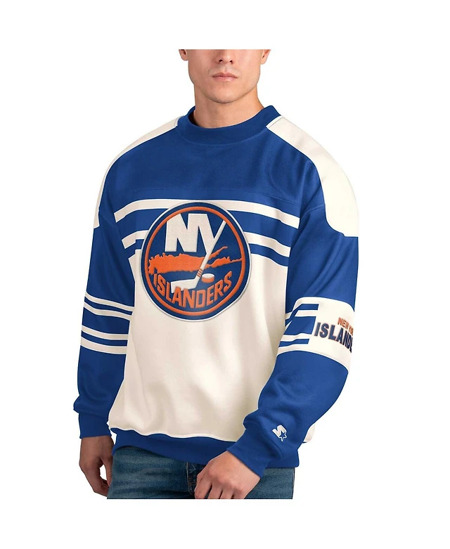 Men's Starter White New York Islanders Defense Fleece Crewneck Pullover Sweatshirt