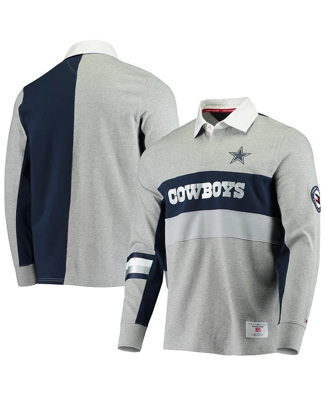 Men's Tommy Hilfiger Heather Gray, Navy Dallas Cowboys Connor Oversized Rugby Long Sleeve Polo Shirt