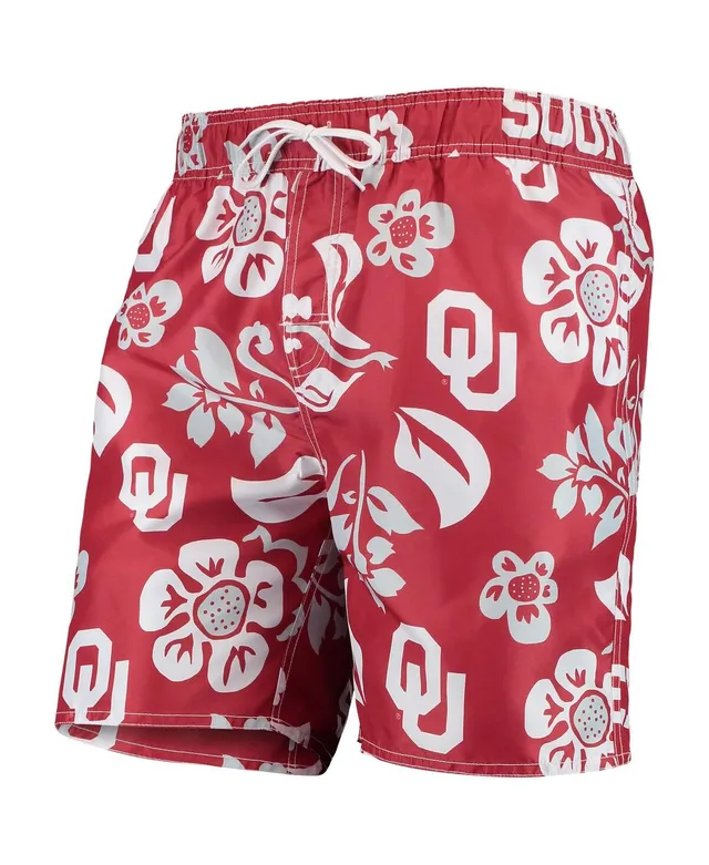 Men's Wes & Willy Crimson Oklahoma Sooners Vintage-Like Floral Swim Trunks