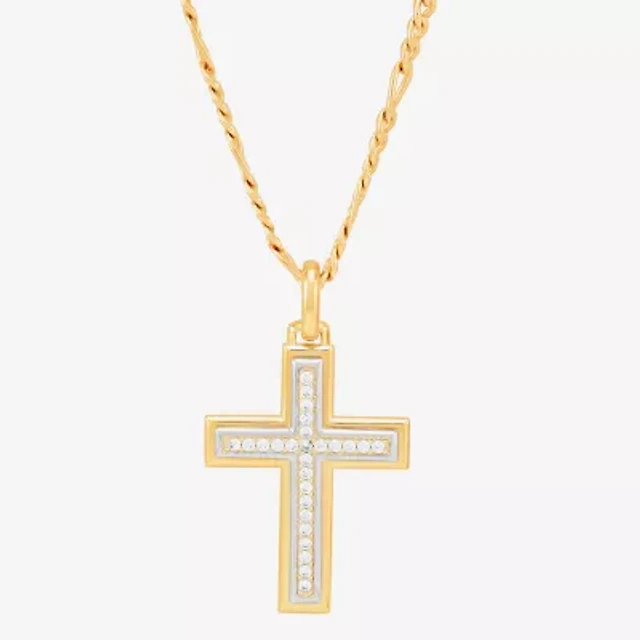 Mens White Cubic Zirconia 14K Gold Over Silver Cross 24 Inch Pendant Necklace